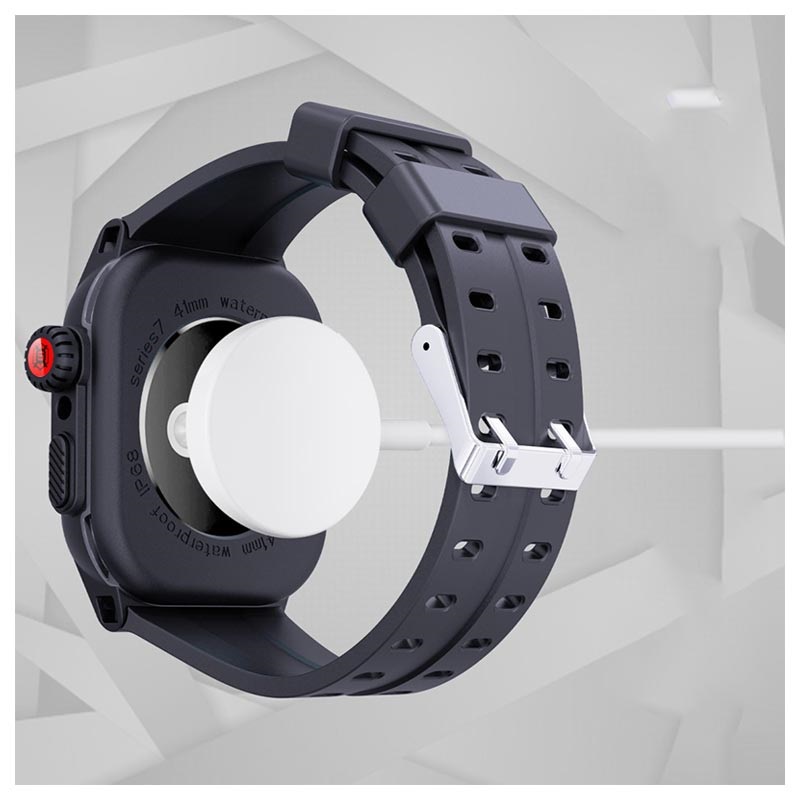 - Capa à prova de água Shellbox com protetor de ecrã e uma bracelete de silicone para o seu Relógio Apple Series 9/8/7