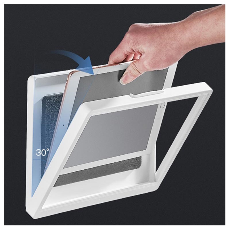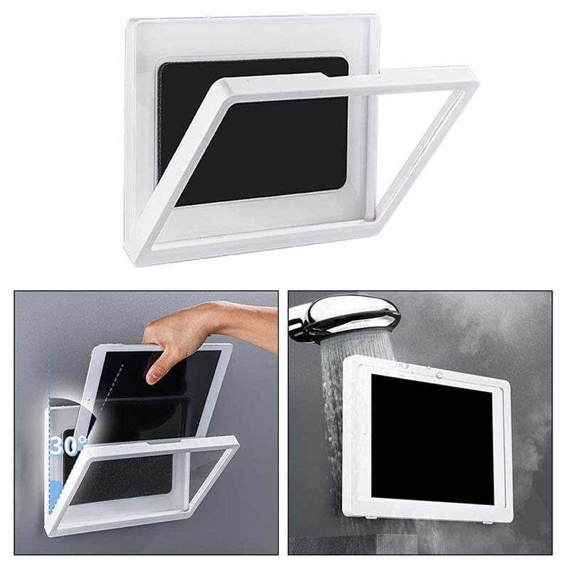 Agora o seu tablet pode acompanhá-lo mesmo no duche, graças a esta capa à prova de água e suporte de parede. Esta capa impermeável possui um painel frontal antiembaçante e sensível ao toque com uma abertura fixa a 30 graus, para que possa colocar/retirar o seu tablet sem se preocupar em deixá-lo cair. Com um suporte de parede aderente, poderá colocar esta capa à prova de água em qualquer parede sem fazer um furo, posicionar o seu tablet na posição paisagem ou retrato e assistir a um filme ou videoclipe enquanto cozinha ou toma banho.