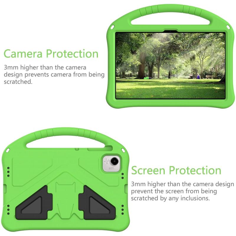 É feita de material EVA ecológico e não tóxico. É resistente a impactos e reforça os cantos. A moldura elevada protege o ecrã de arranhões e estilhaços. O suporte na parte traseira desta fantástica capa para Honor Pad X9a permite assistir a vídeos com as mãos livres. A alça de transporte torna a capa ainda mais prática e emocionante para as crianças.