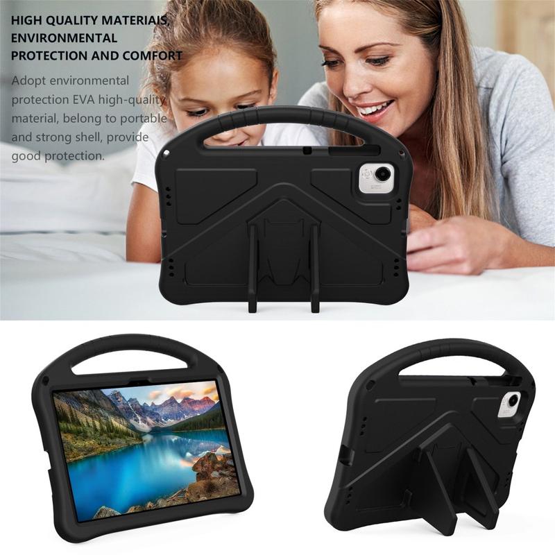 É feita de material EVA ecológico e não tóxico. É resistente a impactos e reforça os cantos. A moldura elevada protege o ecrã de arranhões e estilhaços. O suporte na parte traseira desta fantástica capa para Honor Pad X9a permite assistir a vídeos com as mãos livres. A alça de transporte torna a capa ainda mais prática e emocionante para as crianças.