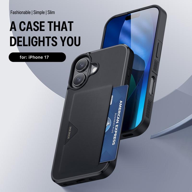 Capa Dux Ducis Pocard para iPhone 17 - Capa protetora fina com porta-cartões, aderência antiderrapante e absorção de choques