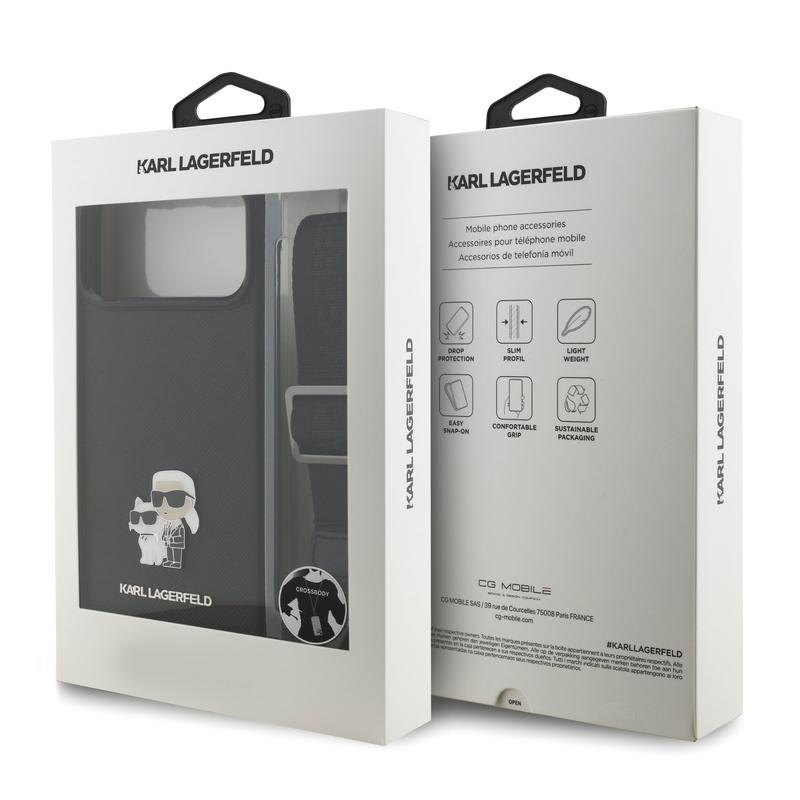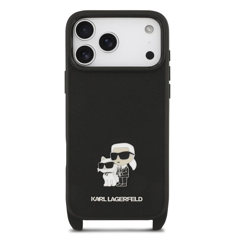 - Capa Karl Lagerfeld Saffiano Crossbody de metal Karl & Choupette para iPhone 17 Pro