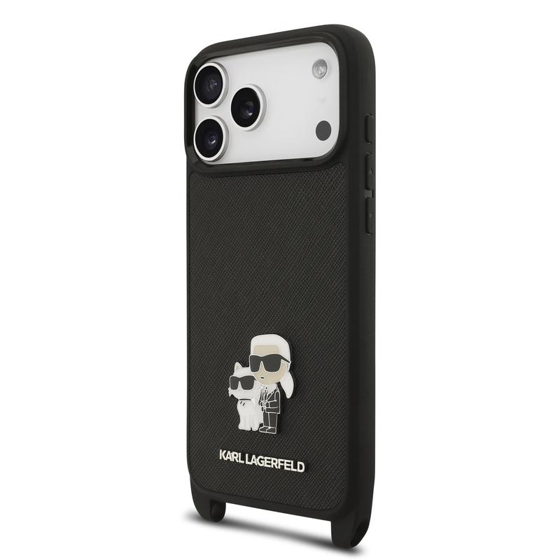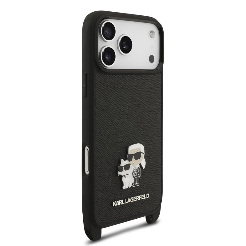 - Capa Karl Lagerfeld Saffiano Crossbody de metal Karl & Choupette para iPhone 17 Pro Max