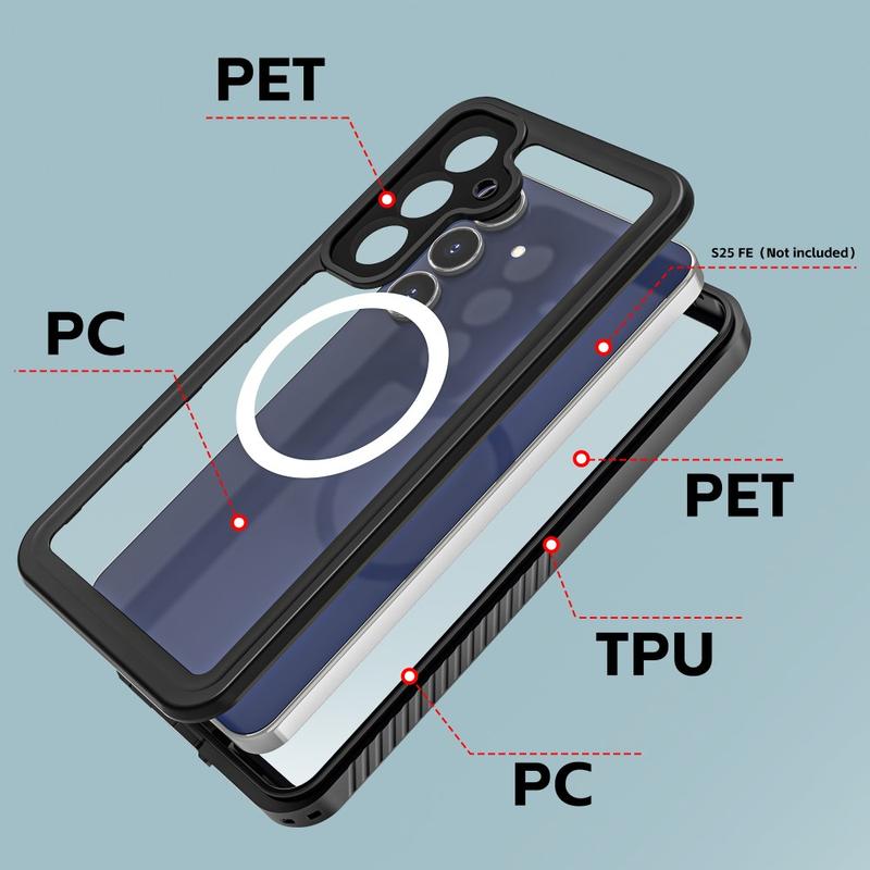 - O alinhamento magnético acrescenta menos de 1 mm à espessura da capa, mas garante até 15 N de força de retenção - o suficiente para manter o Samsung Galaxy S25 FE estável em viagens de carro acidentadas.