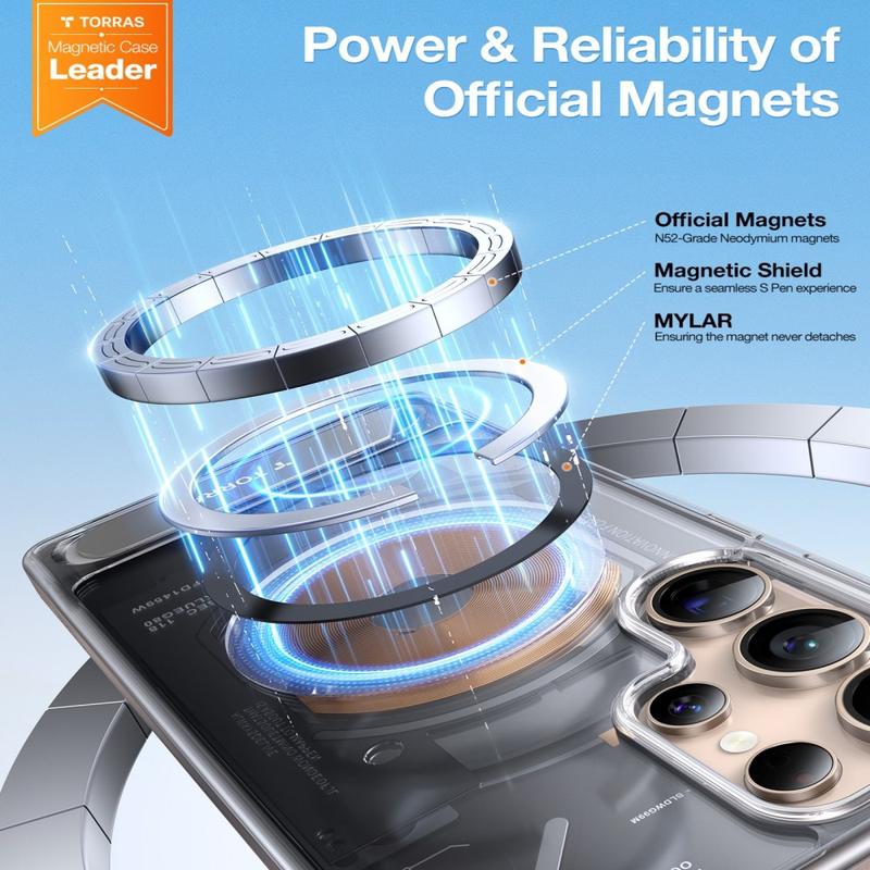 A capa magnética Torras Ostand L1 é fabricada com uma combinação cuidadosamente equilibrada de TPU, PC e metal, proporcionando durabilidade sem comprometer o estilo. Esta construção multi-material protege o seu Samsung Galaxy S26 Ultra do desgaste diário, mantendo uma aparência elegante e moderna que se sente confortável na mão.