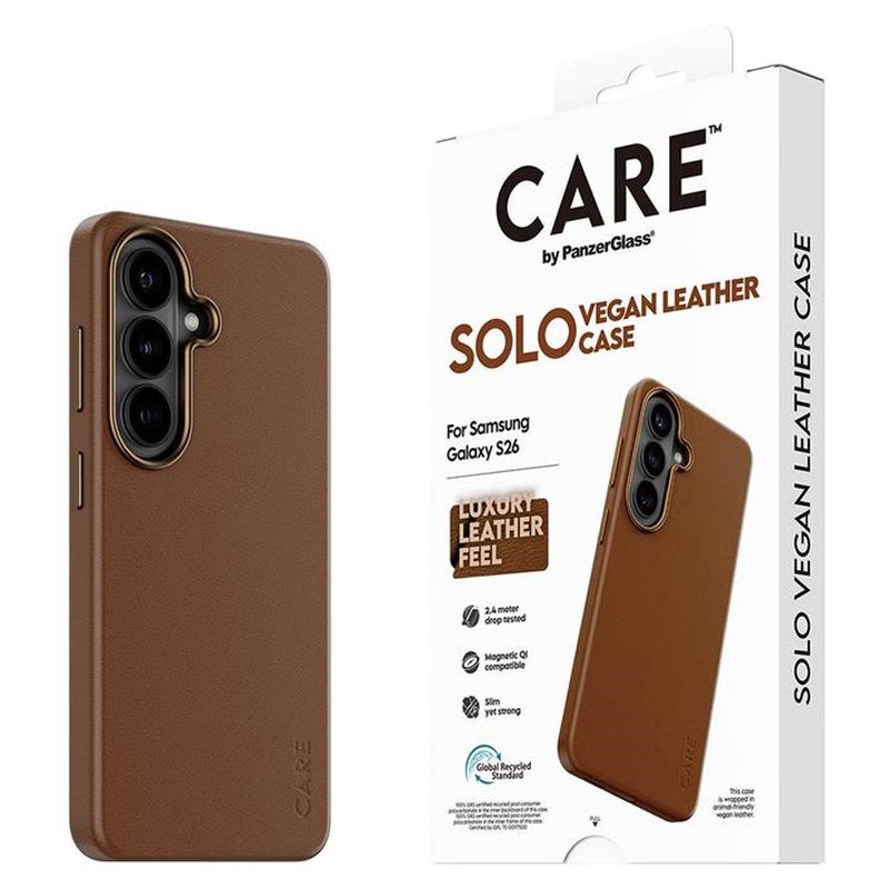 Capa magnética Care by PanzerGlass Solo para Samsung Galaxy S26 - Acabamento em PU, testada contra quedas de 2,4 m, compatível com acessórios magnéticos, proteção aprimorada para a câmara