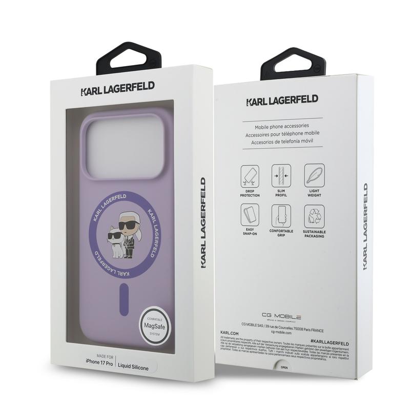 Capa MagSafe de silicone líquido Karl Lagerfeld Karl and Choupette para iPhone 17 Pro
