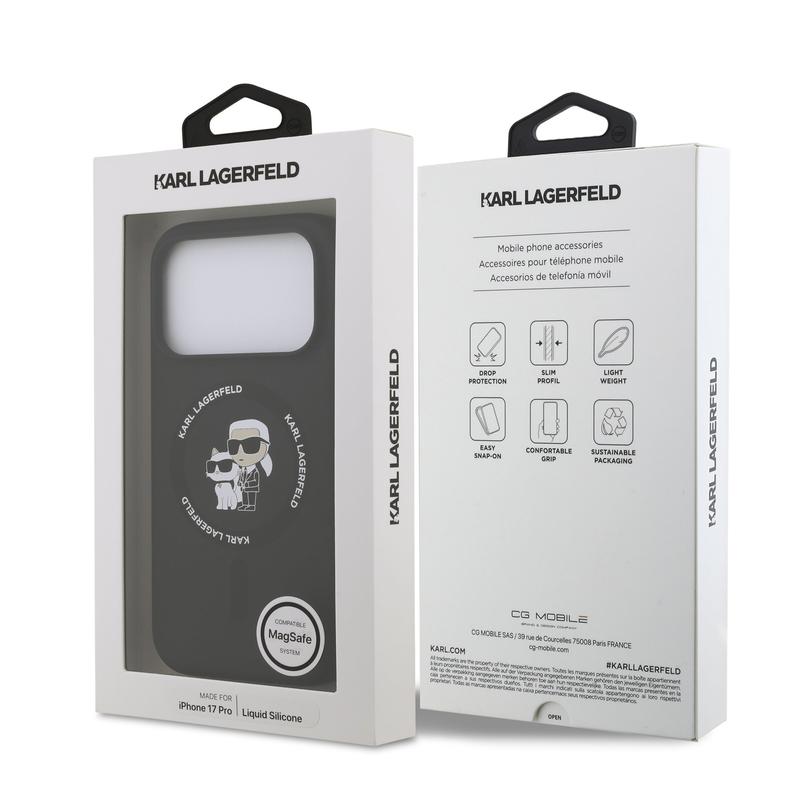 Capa MagSafe de silicone líquido Karl Lagerfeld Karl and Choupette para iPhone 17 Pro