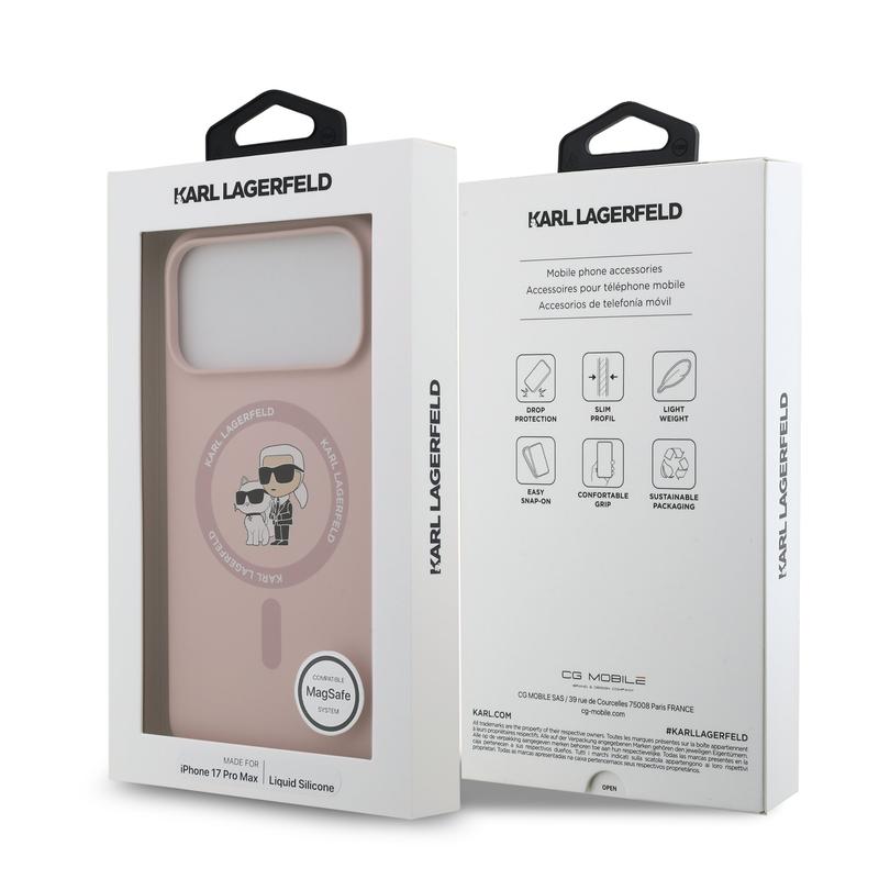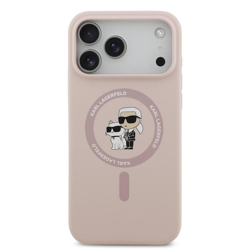 Capa MagSafe de silicone líquido Karl Lagerfeld Karl and Choupette para iPhone 17 Pro Max
