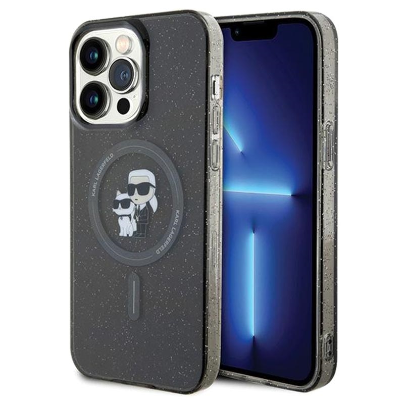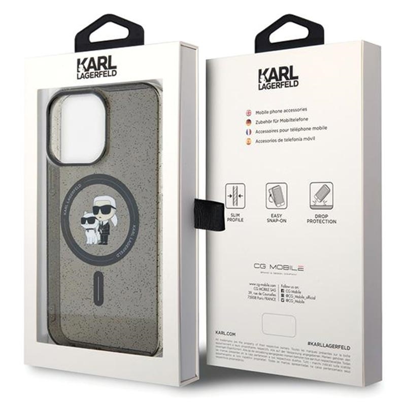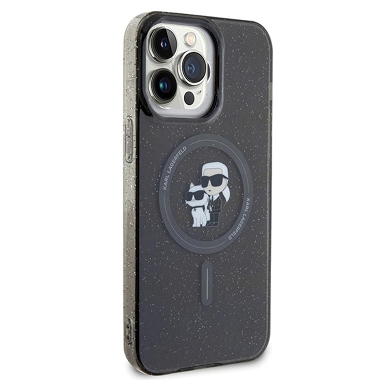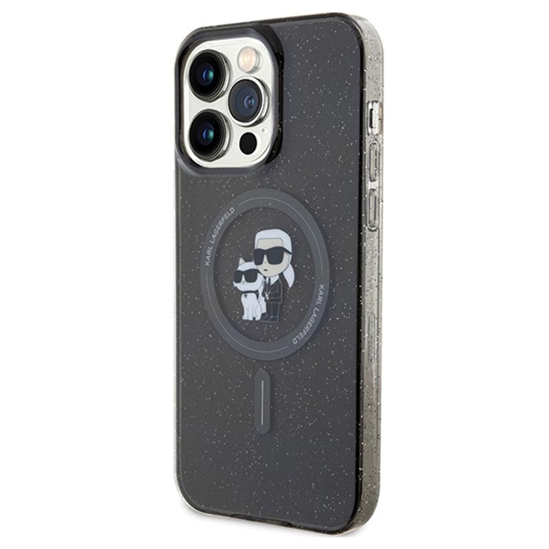 Capa MagSafe Karl Lagerfeld IML Glitter Karl & Choupette para iPhone 15 Pro - Preto