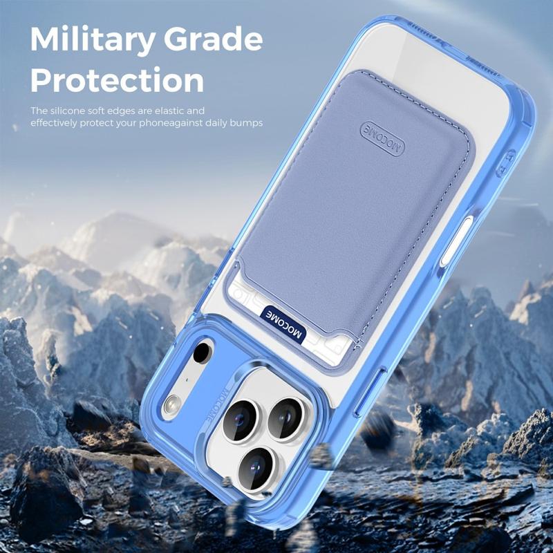 Proteja o seu dispositivo com estilo com a capa MagSafe para iPhone 17 Pro, concebida para durabilidade e comodidade. Construída com uma estrutura híbrida de TPU + PC, esta capa combina flexibilidade e resistência para proteger contra quedas, riscos e desgaste diário. O anel magnético integrado torna-a totalmente compatível com o carregamento MagSafe e os suportes magnéticos para automóvel, enquanto a bolsa para cartões fina e amovível com íman duplo permite transportar 1-2 cartões sem aumentar o volume. Um acabamento cristalino mantém o iPhone 17 Pro com um aspeto elegante e original, enquanto as extremidades reforçadas e os rebordos elevados garantem uma proteção total do ecrã e da câmara.