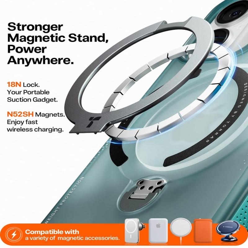 Capa MagSafe Torras Ostand Q3 Air para iPhone 17 - Suporte 360, proteção AirMAX Airbag, pega magnética forte