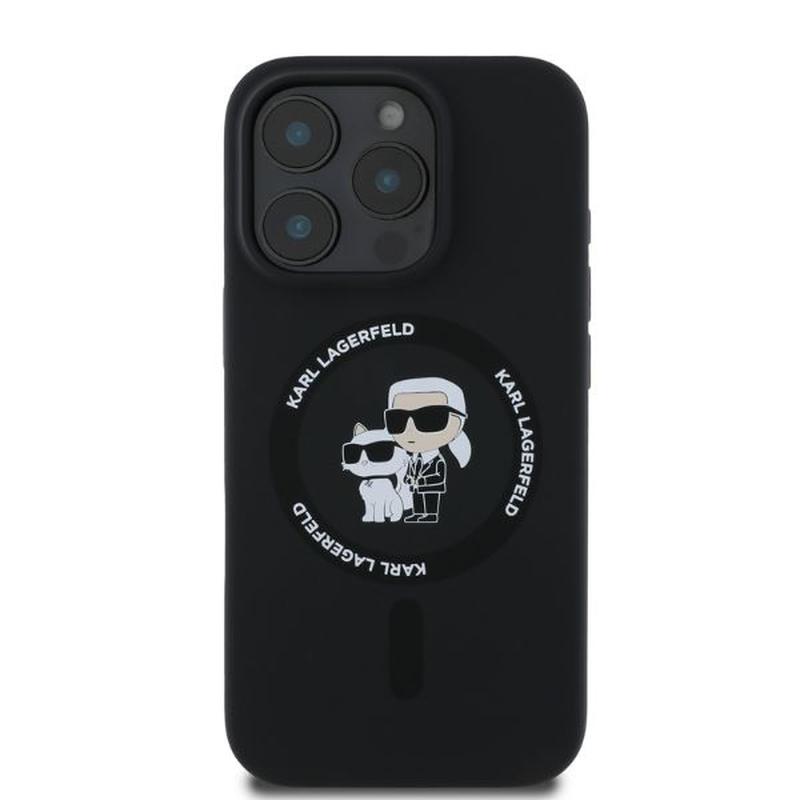 Capa MagSafe de silicone líquido Karl Lagerfeld Karl and Choupette para iPhone 16 Pro Max