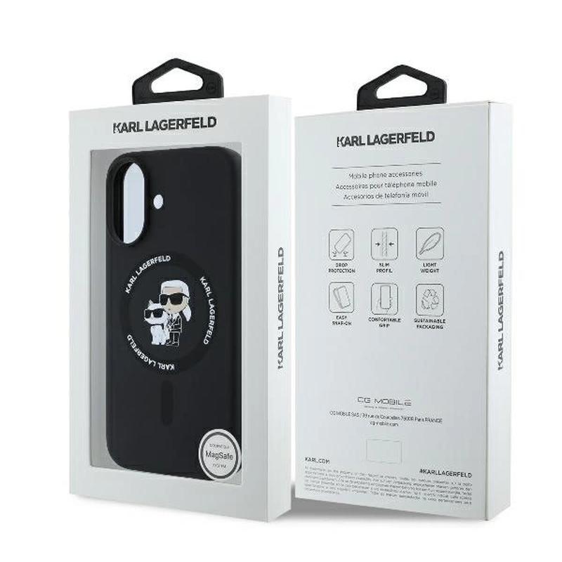 Capa MagSafe de silicone líquido Karl Lagerfeld Karl and Choupette para iPhone 16 Plus