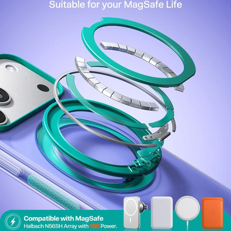 Uma característica fundamental desta capa é a sua forte compatibilidade magnética. Construída com um conjunto de ímanes Halbach N56SH e uma força de sucção especificada de 18 N, foi concebida para um alinhamento seguro com acessórios e carregadores magnéticos compatíveis. O suporte magnético integrado de 360° acrescenta uma conveniência extra, permitindo-lhe posicionar o seu iPhone 17 Pro Max para visualização mãos-livres durante videochamadas, streaming, leitura ou multitarefas do dia-a-dia.