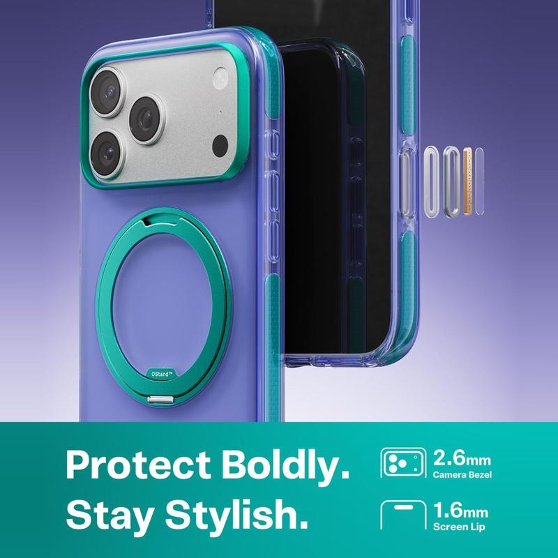 A capa Torras O3 Hue também é construída com bordas de proteção salientes para ajudar a reduzir o contacto direto com superfícies planas. A saliência de 2,5 mm para a câmara e as bordas salientes de 1,5 mm do ecrã proporcionam uma separação extra em torno das áreas mais expostas do iPhone 17 Pro Max. Com materiais reforçados de amortecimento de impacto, compatibilidade com MagSafe e uma prática função de suporte, esta capa é uma excelente escolha para utilizadores que procuram proteção e conveniência num único design.