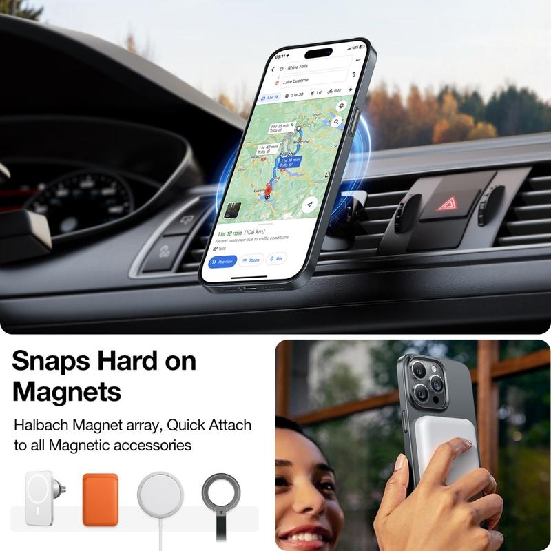 As capas genéricas protegem ou ligam - raramente ambas. A Torras combina a defesa de corpo inteiro com o alinhamento MagSafe de primeira classe, para que não tenha de escolher. Suficientemente fina para caber no bolso, suficientemente resistente para sobreviver a manhãs desastradas e suficientemente elegante para combinar com as linhas simples do iPhone 15 Pro Max.