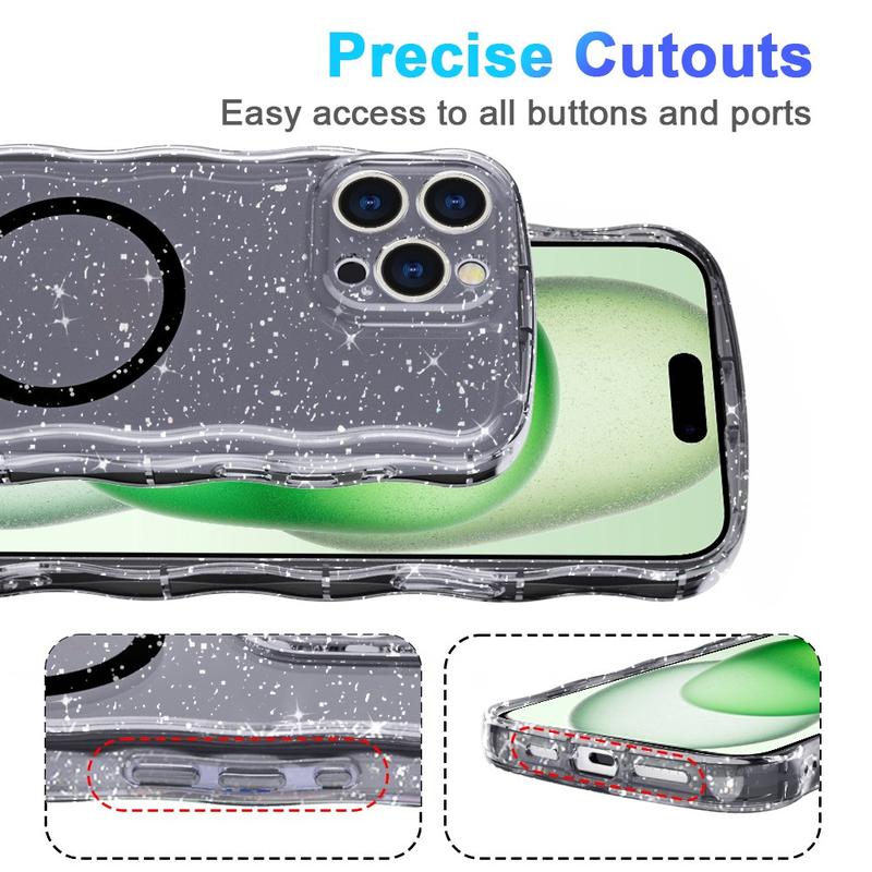 Capa Wave-Edge Laser Glitter MagSafe TPU para iPhone 16 Pro