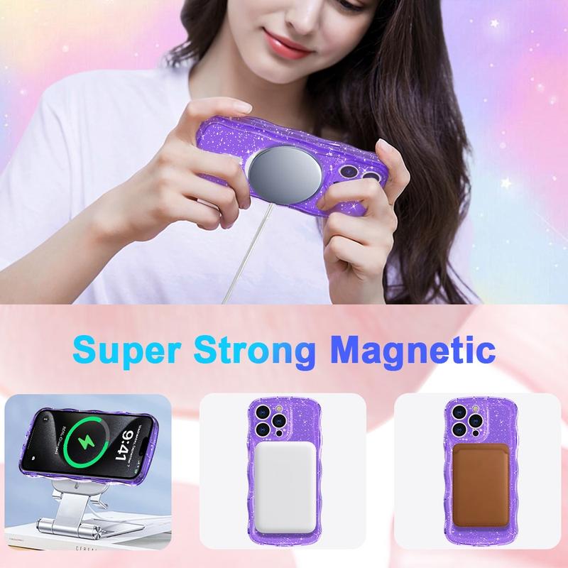 Capa MagSafe de TPU Wave-Edge Laser Glitter para iPhone 15 Pro