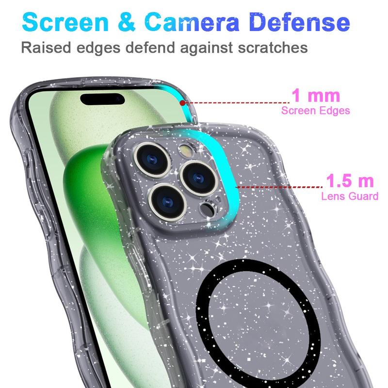Capa MagSafe de TPU Wave-Edge Laser Glitter para iPhone 15 Pro