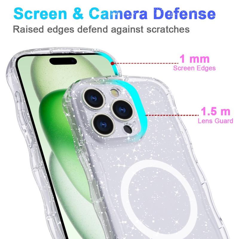 Capa MagSafe de TPU Wave-Edge Laser Glitter para iPhone 15 Pro Max