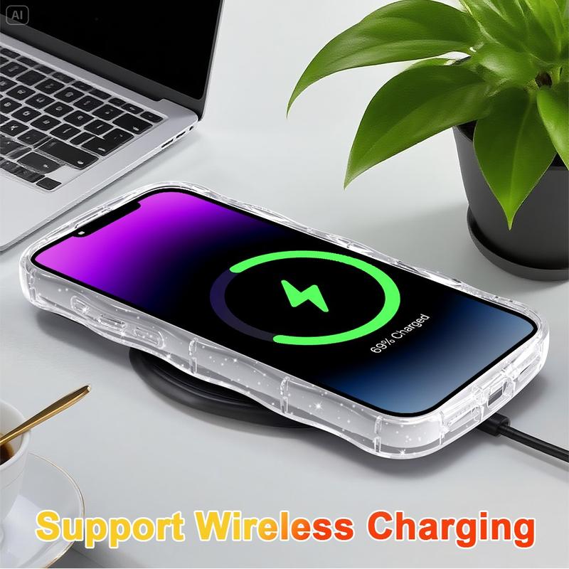 Capa MagSafe de TPU Wave-Edge Laser Glitter para iPhone 17 Pro
