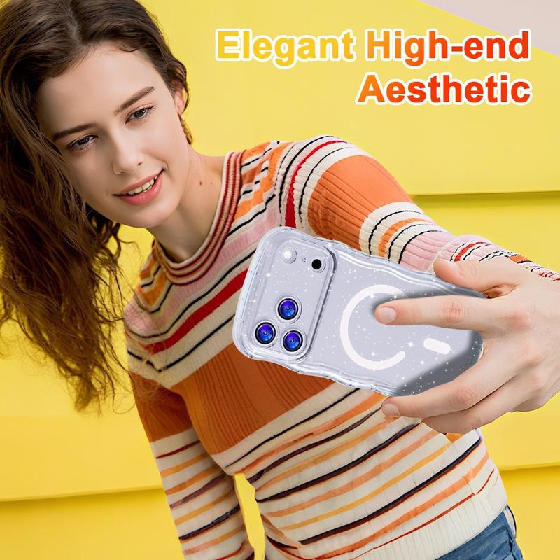 Capa MagSafe de TPU Wave-Edge Laser Glitter para iPhone 17 Pro Max