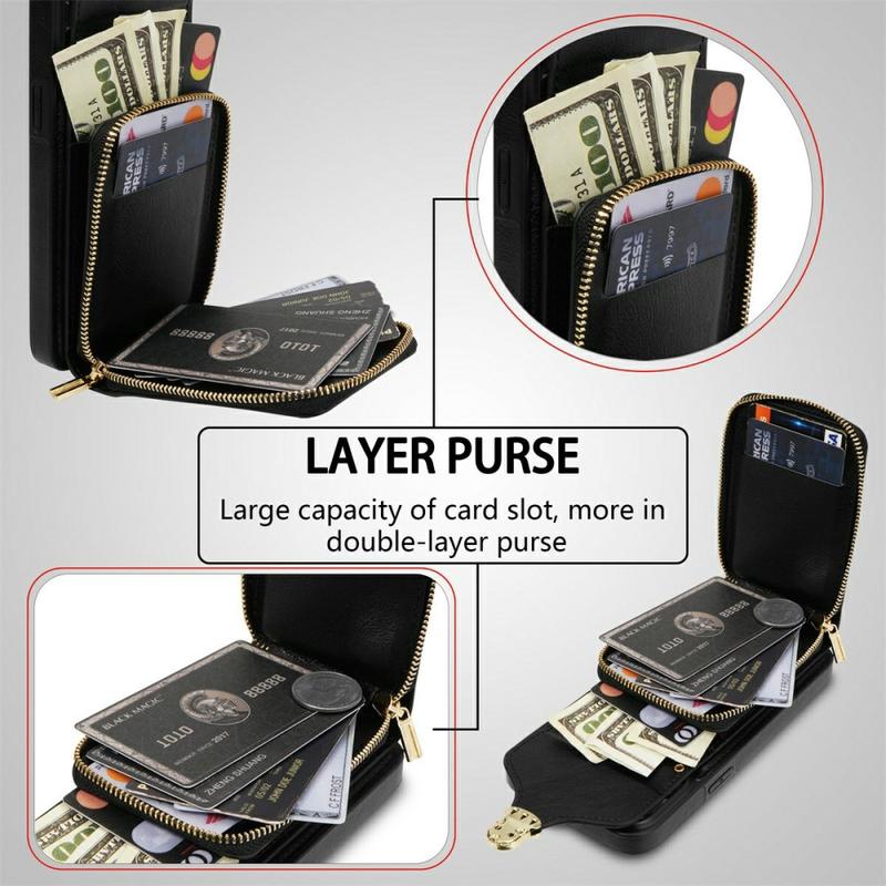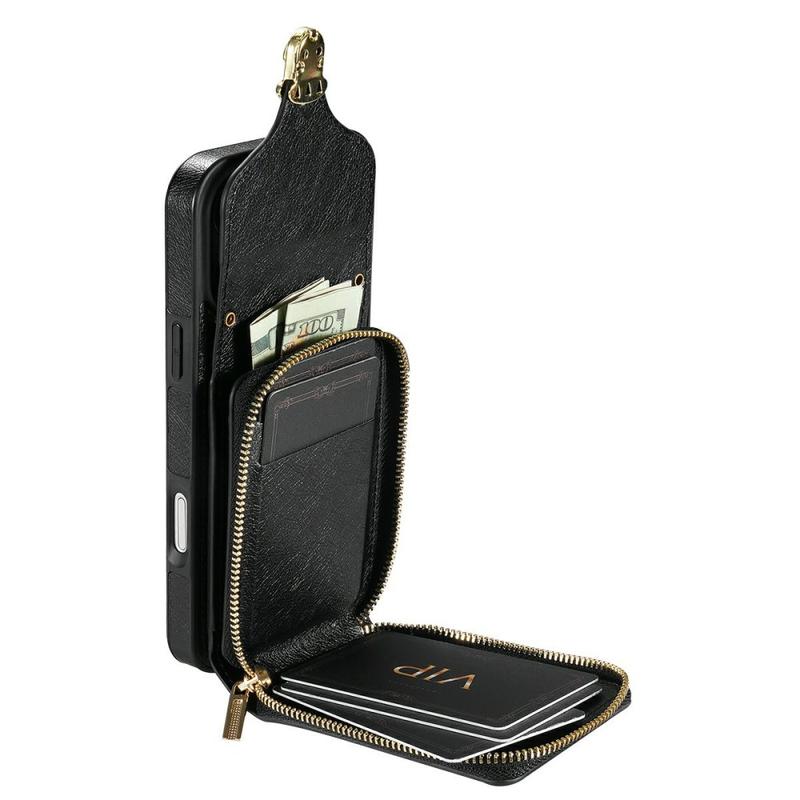 Transporte o seu telemóvel, cartões e dinheiro num único acessório elegante com esta capa com fecho de correr para carteira para o iPhone 17 Pro Max. Fabricada com TPU durável revestida a pele de poliuretano de qualidade superior, oferece proteção diária, substituindo a necessidade de uma carteira separada. Perfeita para quem quer estilo, comodidade e segurança num só.