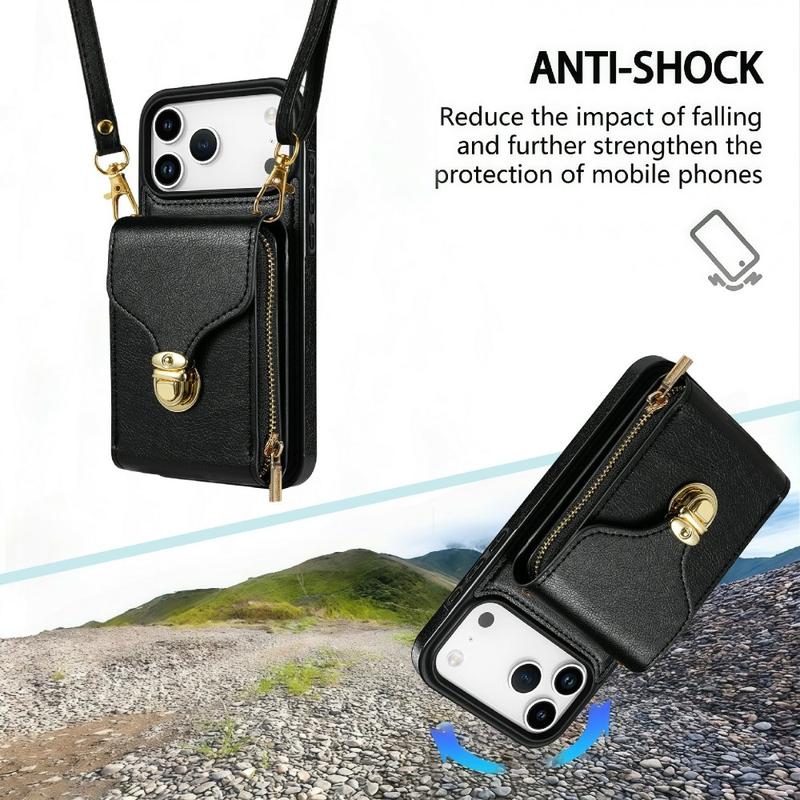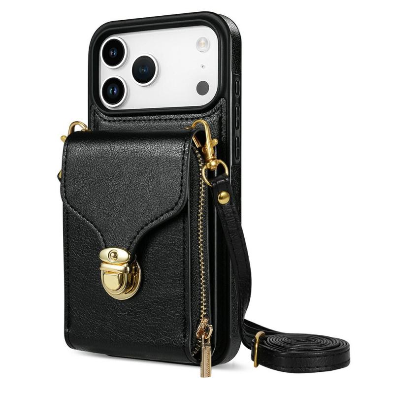 Capa protetora completa em TPU com carteira e correia para iPhone 17 Pro