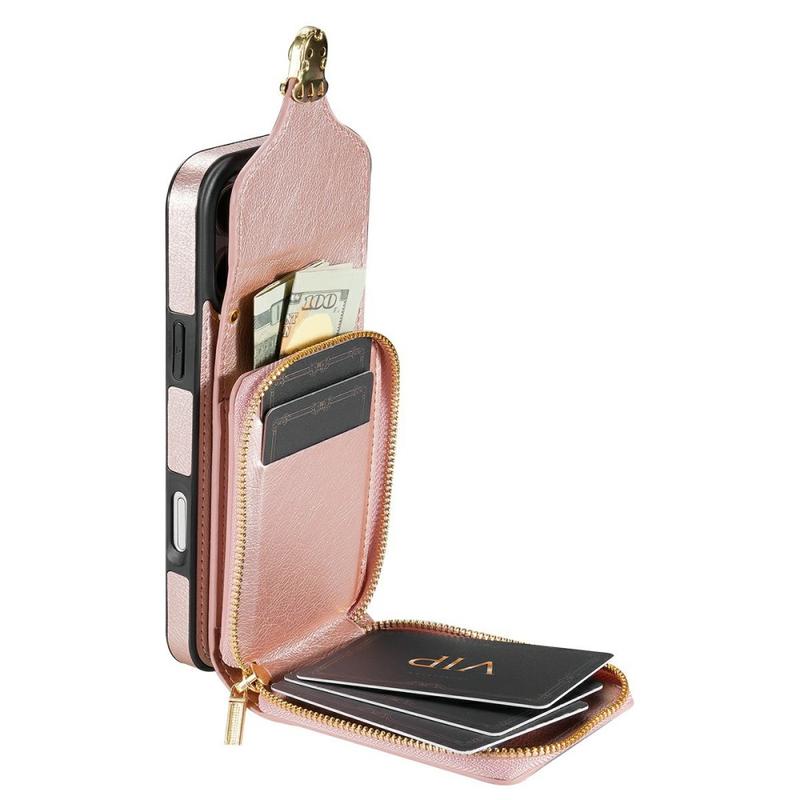 Transporte o seu telemóvel, cartões e dinheiro num único acessório elegante com esta capa com fecho de correr para carteira para o iPhone 17 Pro. Fabricada com TPU durável revestida a pele de poliuretano de qualidade superior, oferece proteção diária, substituindo a necessidade de uma carteira separada. Perfeita para quem quer estilo, comodidade e segurança num só.