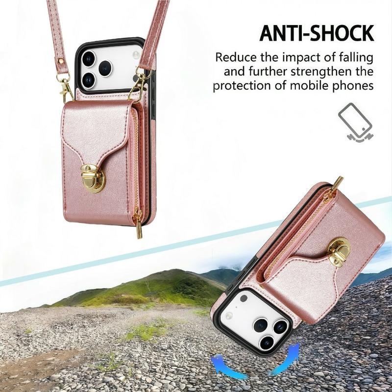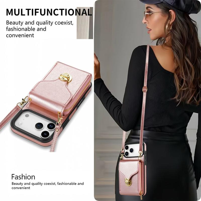 Capa protetora completa em TPU com carteira e correia para iPhone 17 Pro