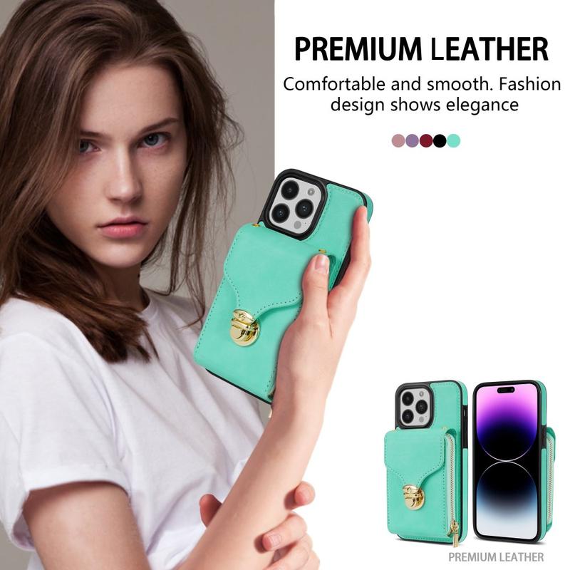 Capa protetora completa em TPU com carteira e correia para iPhone 14 Pro Max