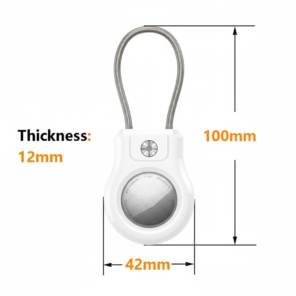 - Cabo de aço seguro - O cabo de aço inoxidável incorporado permite uma fixação firme a chaves, mochilas, coleiras de animais de estimação, bagagem ou bicicletas, garantindo que o Apple AirTag/AirTag 2 se mantém firmemente no lugar.