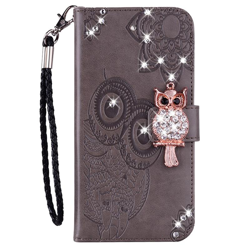 Capa de carteira com strass de coruja para Samsung Galaxy S24