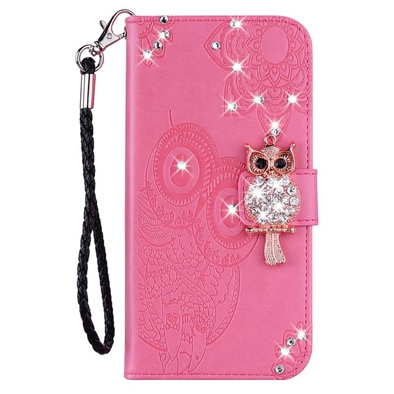 - Capa de carteira de coruja com strass para Samsung Galaxy A15