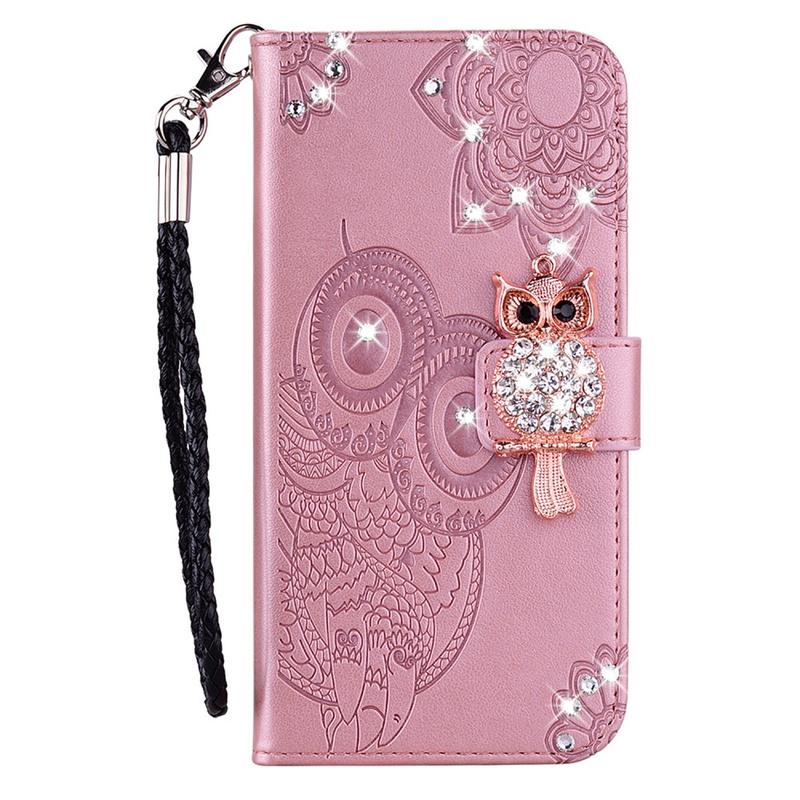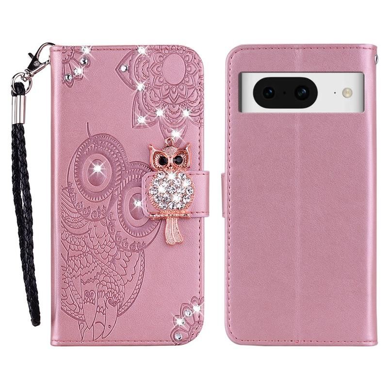- Capa de carteira de coruja com strass para Google Pixel 8