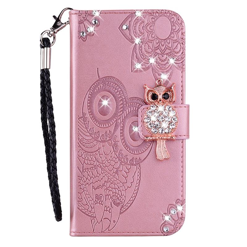 Capa para carteira Samsung Galaxy A54 5G Owl Rhinestone - Rose Gold