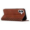 Proteja o seu iPhone 16 Plus com estilo com esta capa premium em poliuretano com padrão de losangos, concebida para durabilidade e comodidade. Com um acabamento elegante, esta capa está equipada com um fecho magnético para manter o seu telemóvel seguro, oferecendo um acesso rápido. A função de suporte incorporada permite-lhe desfrutar de uma visualização em modo mãos-livres, tornando-a ideal para transmissões, videochamadas ou navegação. O elegante design em pele PU não só acrescenta sofisticação, como também proporciona uma proteção fiável contra riscos, choques e quedas, garantindo que o seu dispositivo se mantém em perfeitas condições.