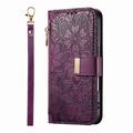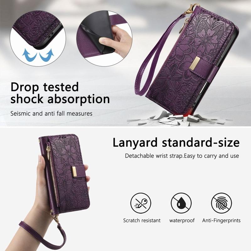 Capa para carteira com padrão floral e de folhas, com bolso com fecho de correr e correia de pulso para iPhone 17