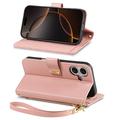 Capa para carteira com padrão floral e de folhas, com bolso com fecho de correr e correia de pulso para iPhone 17