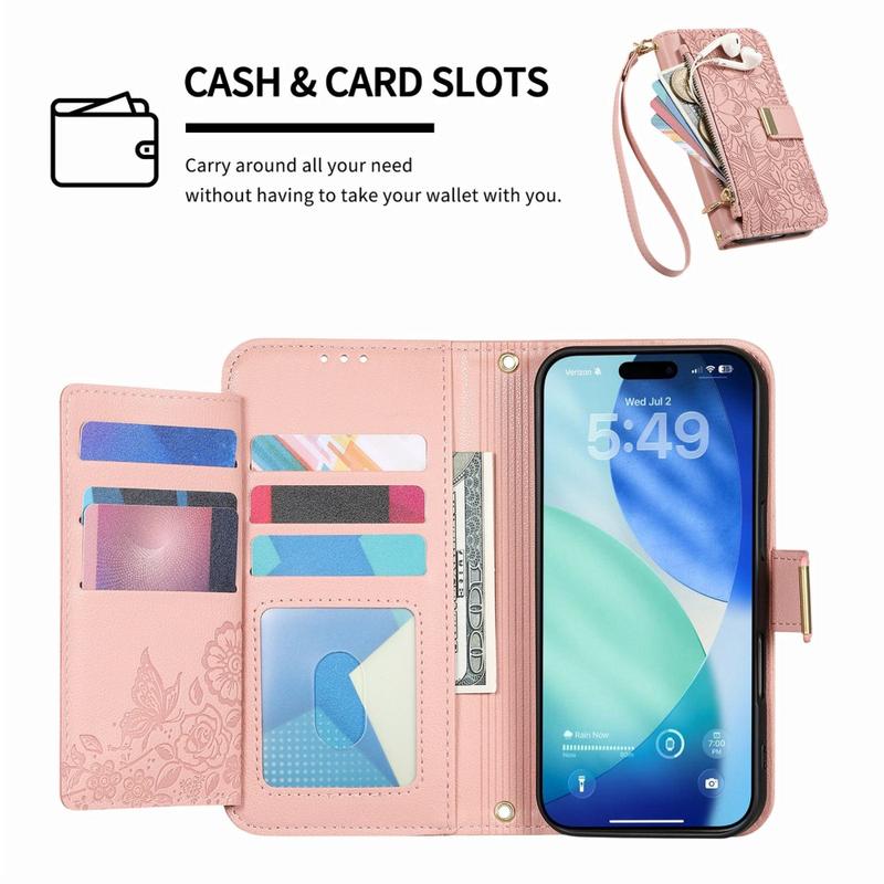 Ao contrário das capas comuns para iPhone Air, esta capa de carteira tudo-em-um combina proteção, organização e elegância. A impressão floral confere-lhe um toque de estilo, enquanto o bolso com fecho e a correia de pulso proporcionam uma comodidade inigualável para o dia a dia e para as viagens.