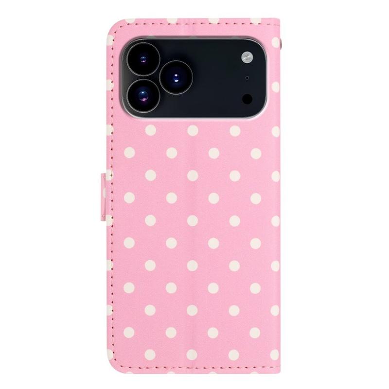 Capa tipo carteira com padrão de bolinhas para iPhone 17 Pro - Proteção elegante e funcional