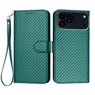 Capa Premium para carteira com correia para iPhone 17 Pro - Textura de fibra de carbono