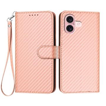 Capa Premium para carteira com correia para iPhone 16 - Textura de fibra de carbono