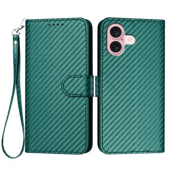 Capa Premium para carteira com correia para iPhone 16 - Textura de fibra de carbono