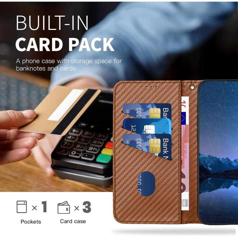- Textura de fibra de carbono premium - Feito de poliuretano durável (PU) com um padrão refinado de fibra de carbono e revestimento interno de TPU macio para absorção de choque confiável e resistência a arranhões.