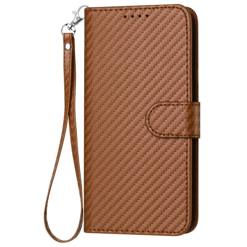 Capa Premium para carteira com correia para iPhone 15 Pro Max - Textura de fibra de carbono