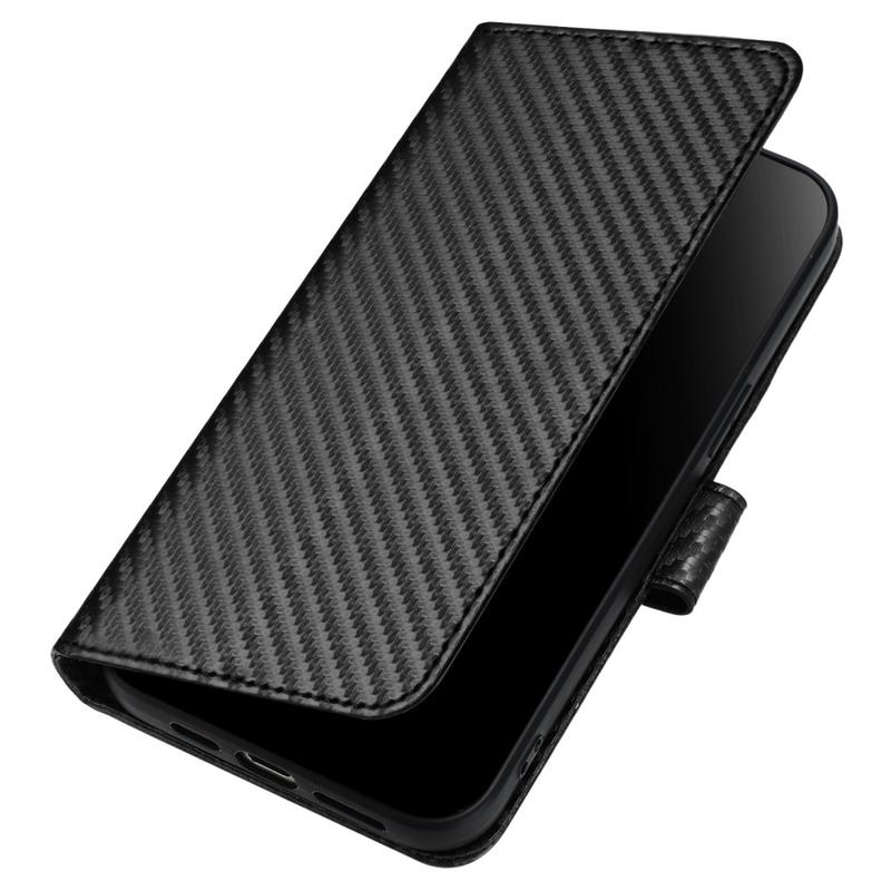 Proteja o seu iPhone 15 Pro com estilo com a capa de carteira premium, concebida com uma textura de fibra de carbono premium para um aspeto elegante e moderno. Combinando funcionalidade, conforto e proteção fiável, é o companheiro diário perfeito para utilizadores que valorizam tanto a praticidade como a elegância.