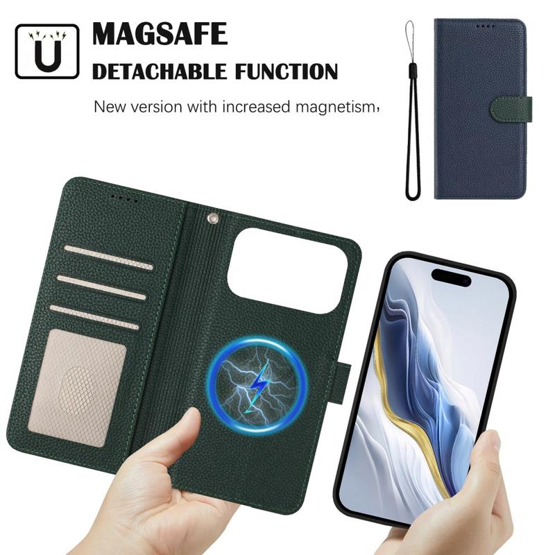 Capa para carteira amovível com MagSafe, proteção RFID e correia de mão para iPhone 17 Pro Max