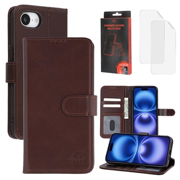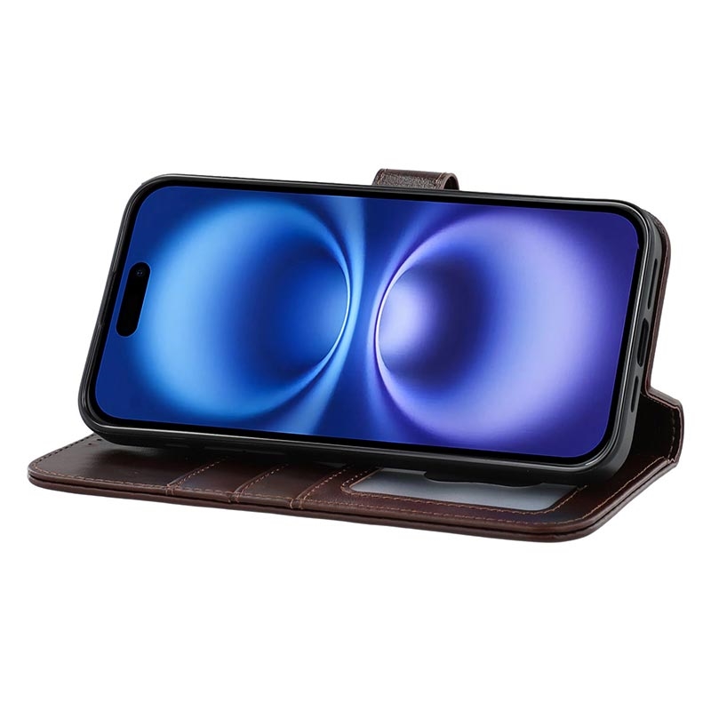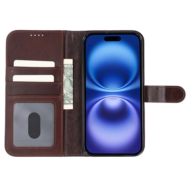 Capa de couro para carteira MyTPhone CardMate Premium para iPhone 17e - Suporte de pé, suporte para cartões, suporte para carregamento sem fios, 2 protecções de ecrã